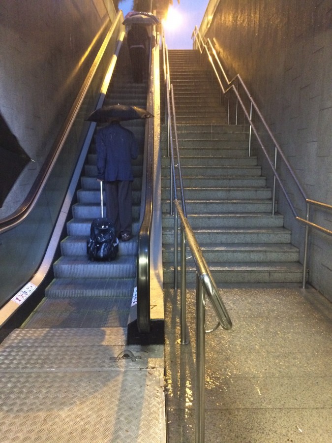 Постояв немного внизу, мы поняли, что ждать просвета бесполезно и побежали в гостиницу. Расстояние было короткое, но мы успели промокнуть, не смотря на плащи. В гостинице мы стали сушить намокшие кроссовки и рукава свитеров феном. Это значительно ускорило их высыхание. Остаток дня мы никуда не выбирались. Только выбежали поужинать вечером в уже разведанный ранее ресторан не далеко от гостиницы.